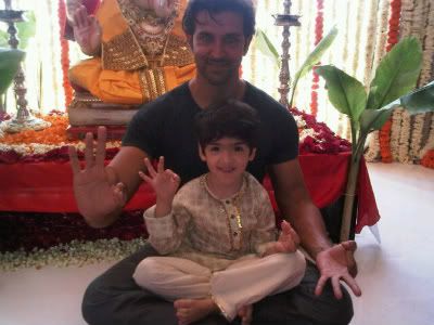 Sussanne sigue compartiendo hermosas fotos y esta ves les tocó a H al cuadrado. Es evidente que fue en medio de las celebraciones por el Ganesh Chaturthi (Nacimiento del Dios Ganesh) y aquí tenemos a Hrithik y Hrehaan junticos imitandolo!!!! amo esa foto