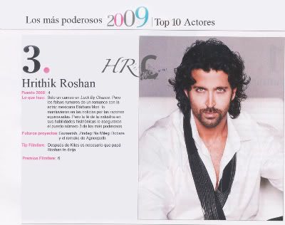 Bueno esto es viejito pero ya que estaba en Santa Martation sin conexión a internet, decidí ponerme un poquito al día con esas cositas interesantes que a veces no alcanzo a traducir, esta véz son dos cositas de Filmfare. Primero la famosa lista de los más poderosos, como siempre nuestro adorado Du en los primeros puestos. Tan súper nuestro Du, no sacó película en el 2009 y aún así se las arregla para aparecer en la lista XD
